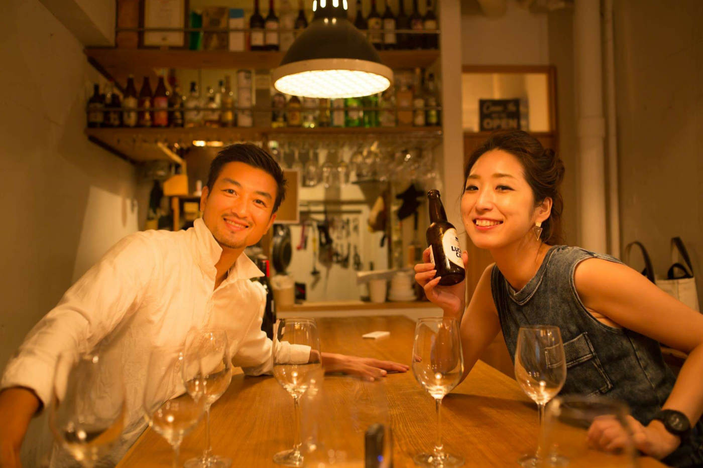 安彦選手がサッカークラブをサポートする仕事に就いている頃、私も第二の人生をはじめました。27歳からの未経験、そろそろ同級生は結婚したり部下ができたりしている頃です。 あとはないので前に進むのみ、必死で勉強をしました。最初はいろいろ苦労しましたが、次第にリピーターのお客様に恵まれ、今ではオーナーからお店を譲っていただき、会社を興して自分のお店でワインを提供するようになりました。そんな私が自信をもってオススメするスパークリングワインの赤と白を使って記念ボトルをお届けします。